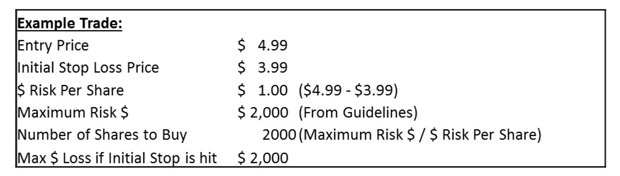 d. New Shares to Buy = Amount of Risk $ Available/Potential Loss Per Share on New Shares.