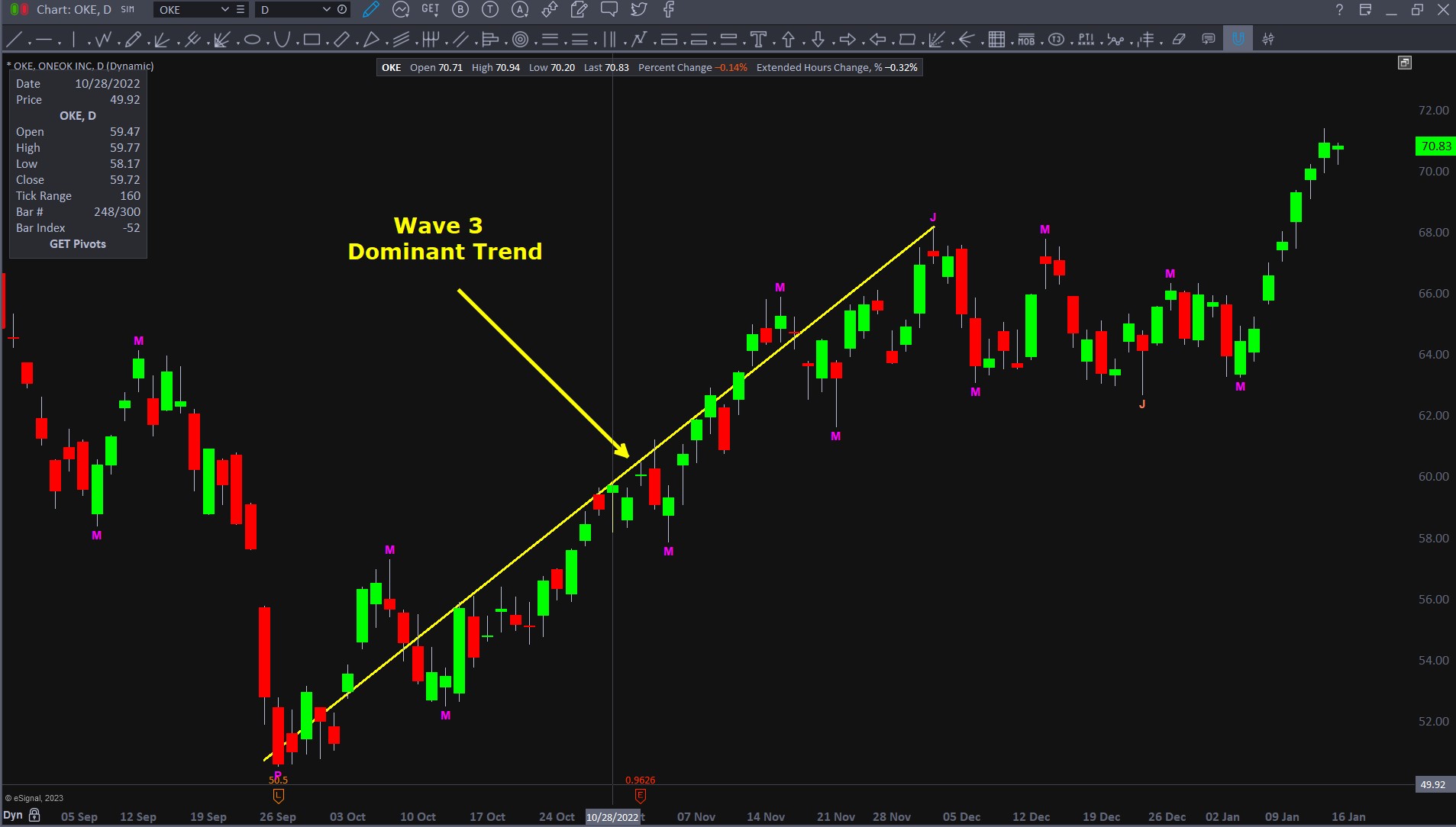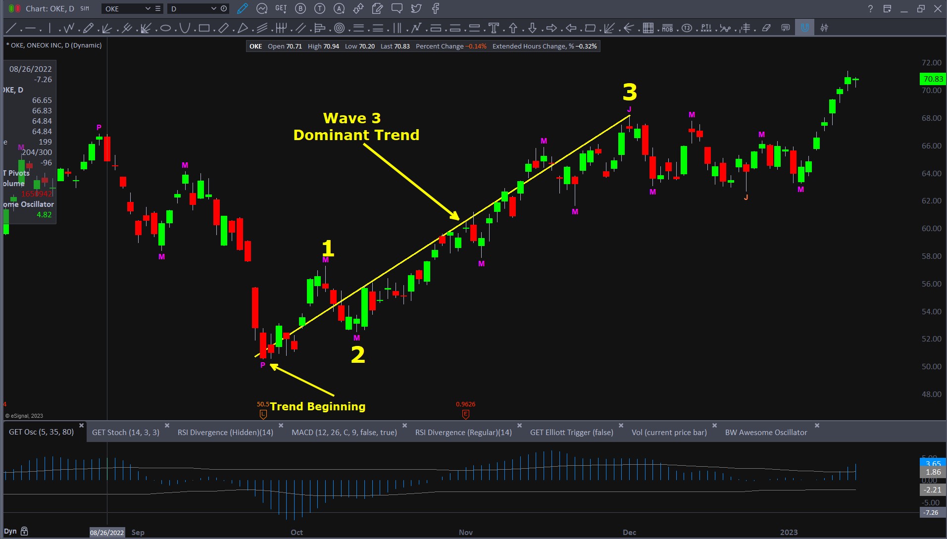 Above image shows again $OKE that we looked at earlier. Notice that the waves are now labeled.
