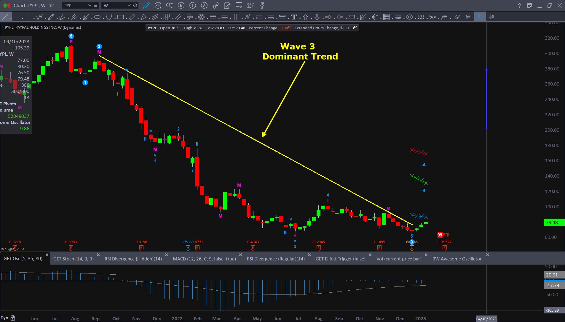 Above is $PYPL weekly chart, a Bearish example, with the waves correctly labeled.