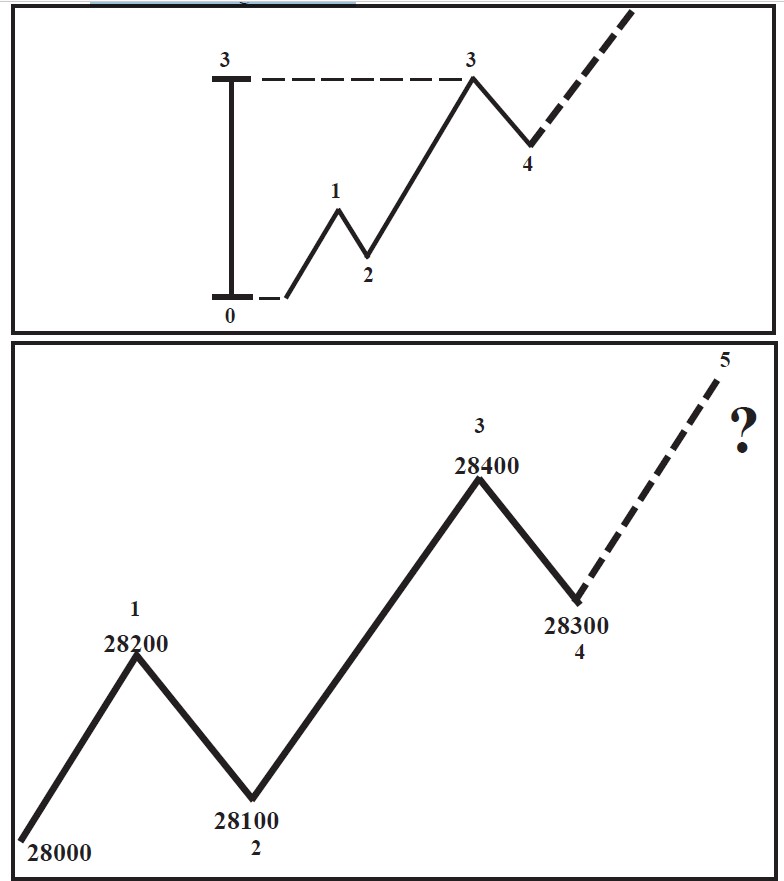 the end of the 5th Wave. Once Wave 4 has been completed, draw a straight line